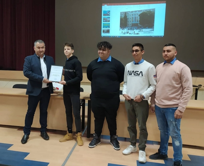 Здравко Здравков, Ивайло Стоянов, Иван Иванов и Георги Христов, ученици от Професионалната гимназия по механоелектротехника в Севлиево, бяха отличени с призова награда в конкурса "Иновативни транспортни технологии и системи".