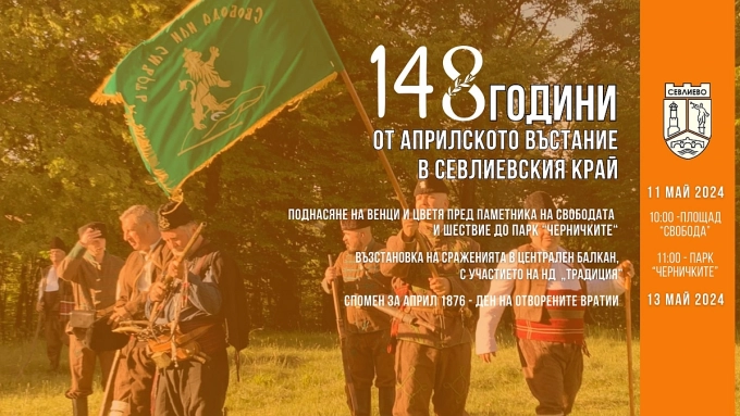 Честването на годишнината от славния април ще бъде на 11 май (събота). В 10:00 часа ще започне тържествената церемония по отдаване на чотит с поднасяне на венци и цветя пред паметника на Свободата в центъра на Севлиево.