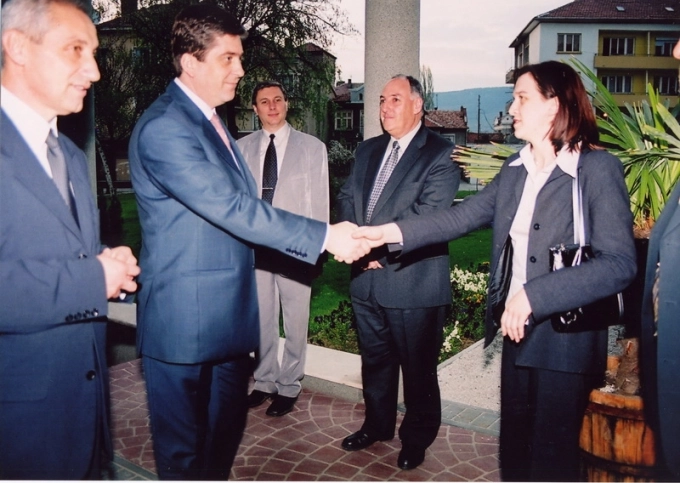 2002 г., кметът Йовко Йовков представя на президента Георги Първанов председателя на сдружението Елица Цанева, снимка: архив бизнесдружение