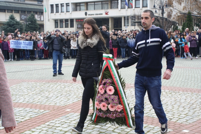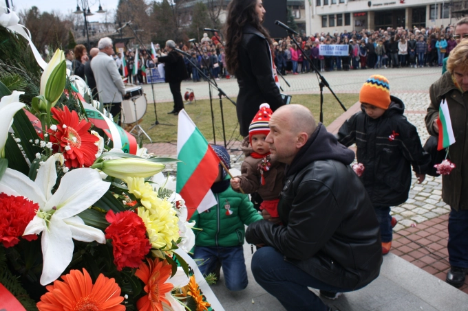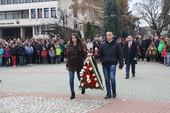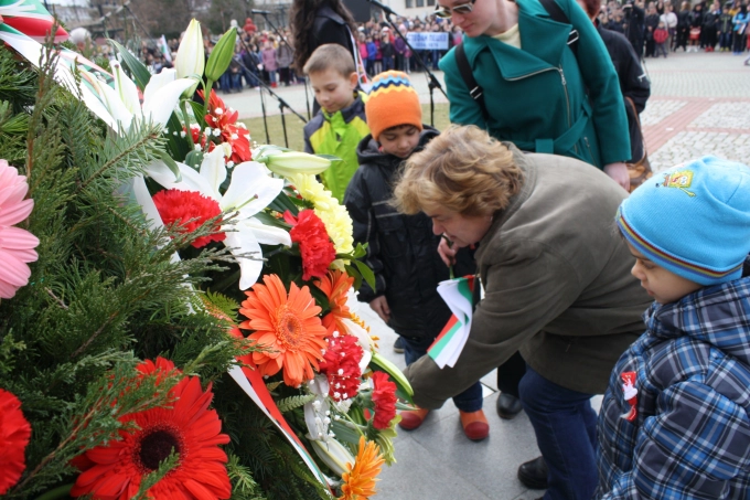 Националният празник на България събра днес на севлиевския площад стотици севлиевци, дошли заедно с децата си, за да отдадат почит на героите, с чиято кръв е напоена земата на днешната свободна България.
