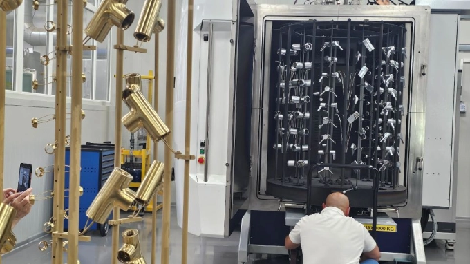 PVD покритието осигурява изключителна издръжливост, устойчивост на надраскване и защита от корозия, което го прави идеално за продукти за баня за ежедневна употреба. С новата технология, която е с голям капацитет, могат да се обработват различни материали, включително месинг, керамичен алуминиев метал (CAM), неръждаема стомана и пластмаса, което значително увеличава както гъвкавостта, така и производителността.