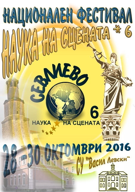 Тази събота и неделя, на 29 и 30 октомври, Севлиево ще бъде домакин на шестото издание на националния фестивал „Наука на сцената-6“. Това е петото домакинство на града ни на проявата, организирана от Съюзите на физиците, химиците, биолозите и математиците в България, Министерство на образованието и науката, Регионалното управление на образованието в Габрово, Община Севлиево и Средно училище „Васил Левски“. А кметът на Севлиево е почетен председател на местния организационен комитет.