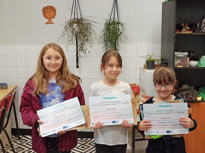 Две първи и едно второ място са оценката за таланта и въздействащите творби на децата от школата по керамика "Кукерче" в Севлиево и техния преподавател Теодора Петева от конкурса „Сладко или солено е бъдещето на Поморийско езеро?“