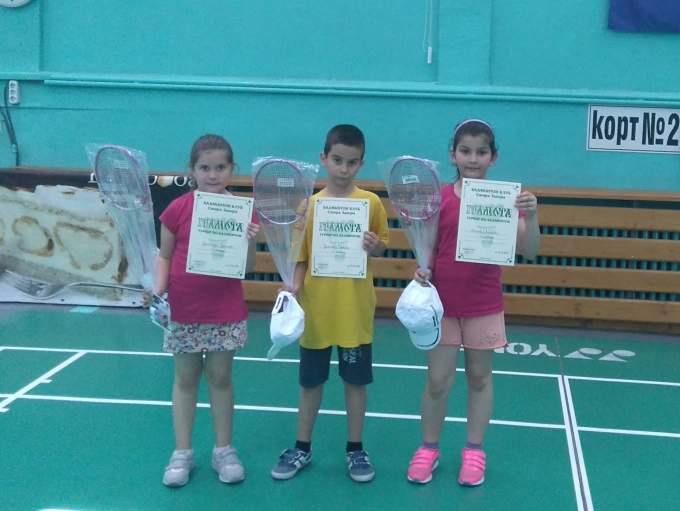 Силен месец юни откъм спортни постижения изпращат бадминтонистите на Севлиево. Месецът за тях започна с участие в VІІ-мия национален турнир за деца до 9 години, който се проведе в Стара Загора в Деня на детето. В конкуренция с 60 деца, нашите състезатели Десислава Друмева, Мария Ангелова и Димитър Петков, се завърнаха с призови места. Десислава зае трето място, като на полуфинала загуби от представителката на Първомай, Мария загуби финала от същата състезателка и остана втора, втори остана и Димитър Петков, загубил драматично финала, също от състезател от Първомай. Организаторите на турнира подариха на призьорите ракети и аксесоари за бадминтон, и както се полага за Деня на детето, имаше и торта за всички.