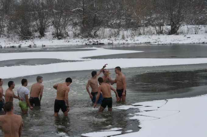 Шестнайсет мъже и момчета не се уплашиха от леда в реката