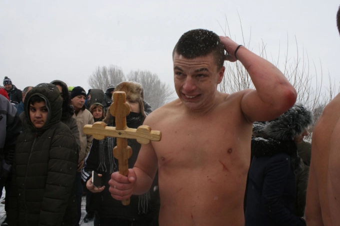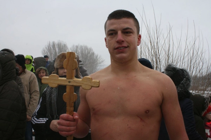 Симеон Спасов извади от ледените води на лека Росица богоявленския кръст на днешния празник. Симеон е на 18 г., за кръста се хвърля за втори път, за първи път стига първи до него. "Защо го правиш?", попита го репортер на "Севлиево онлайн". "За здраве", отговори момчето.