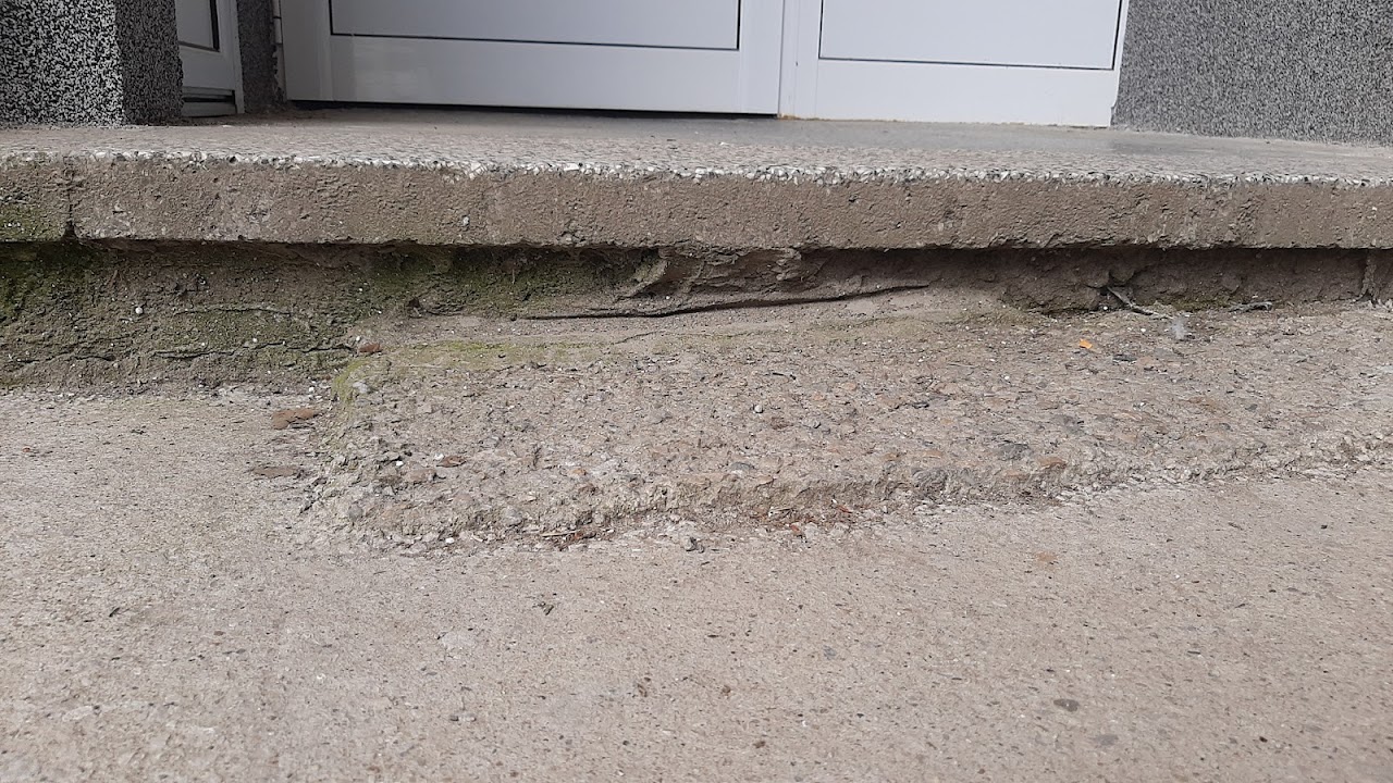 Това стъпало "на ниво терен" трябва да преодолее Лальо Бояджиев, за да стигне до входа си