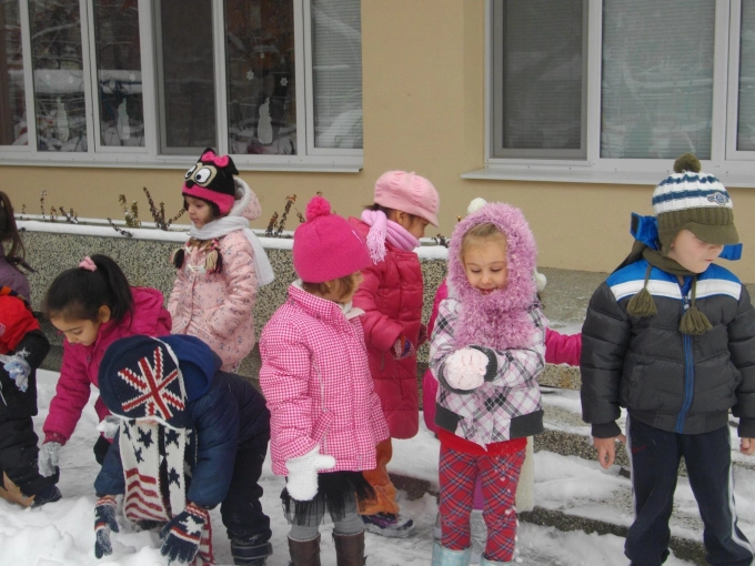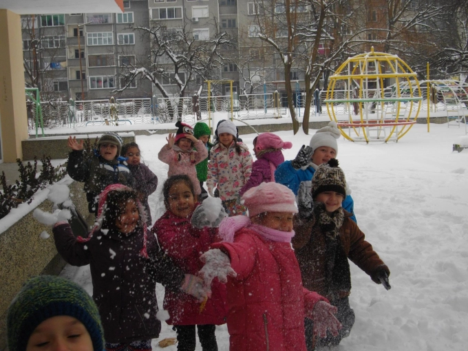 Децата от група "Дъга" огласиха двора на своята градина с радостта си от пухкавия сняг, натрупал докато са били у дома за празниците. И никой не им се караше, докато оформяха ледени топки с топлите си ръкавички. Защото кой би се скарал на дете задето е щестливо...