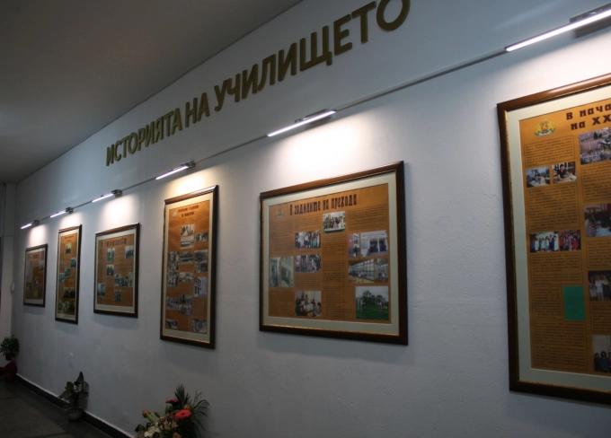Показа го и стената с пана, наречена "История на училището", която разказва в текст и снимки за различните етапи от училищното минало, та до наши дни, също официално открита снощи.