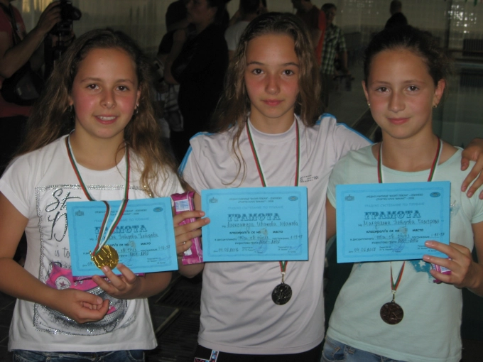 При момичетата Микаела Петрова убедително изпревари конкурентките си и заслужи златото с постижение от 1:16:57 мин., сребърно отличие за Александра Иванова, трето място за Магдалена Чамурова.