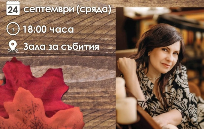 На 24 септември 2025 г. (сряда) от 18:00 ч. в Залата за събития на Градска библиотека ще се състои среща с писателката Анна Авиил (псевдоним на Анна Величкова). Авторката ще представи своя роман „Божана“, който вече спечели признание сред читателите и литературните среди.