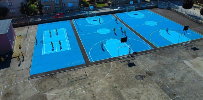 Всички игрални полета са покрити с акрилна настилка от три слоя и три цвята с дебелина 4 мм, положена върху асфалтобетонна основа. В рамките на проекта беше монтирано и ново спортно оборудване.