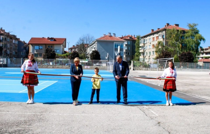 Трите нови игрища, изградени това лято в двора на Основно училище "Стефан Пешев", бяха открити от кмета на Севлиево Иван Иванов и директора на училището Емилия Неделчева.