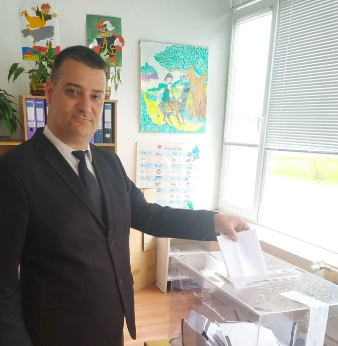 Станислав Лазаров е севлиевският кандидат в листата на ПП "Републиканци за България". Той упражни правото си на вот в четвърта секция в севлиевското ОУ "Христо Ботев".