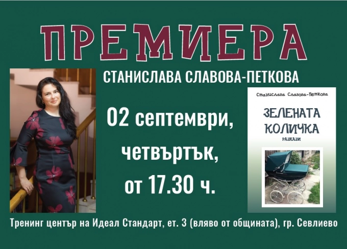 Това е част от достъпната информация, която се открива в интернет за Станислава Славова-Петкова. На 2 септември т.г. тя ще представи сборника си с разкази "Зелената количка".