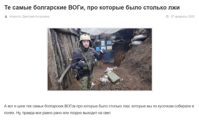 Оригиналният руски текст не твърди, че става дума за забранени муниции, но в него действително се казва, че намерените заряди за гранатомети са произведени в България. „Това са същите тези български ВОГ-ове, заради които имаше толкова лъжи,“ казва човекът в окопа.