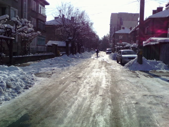 Силно обледени са улиците в Севлиево и повечето от тротоарите. Дали сте с автомобил или пешеходец, необходимо е сериозно внимание, за да се предпазите от инциденти.