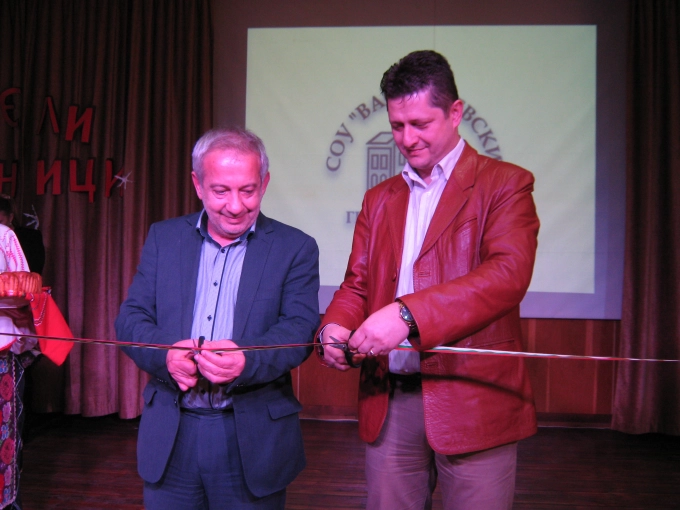 Напълно обновената актова зала на СОУ "Васил Левски" получи своето официално откриване днес. А ритуалната лента на церемонията срязаха директорът Тома Томев и управителят на "Хамбергер България" Николай Петров, който освен спомоществовател на училището, е председател на неговото настоятелство.