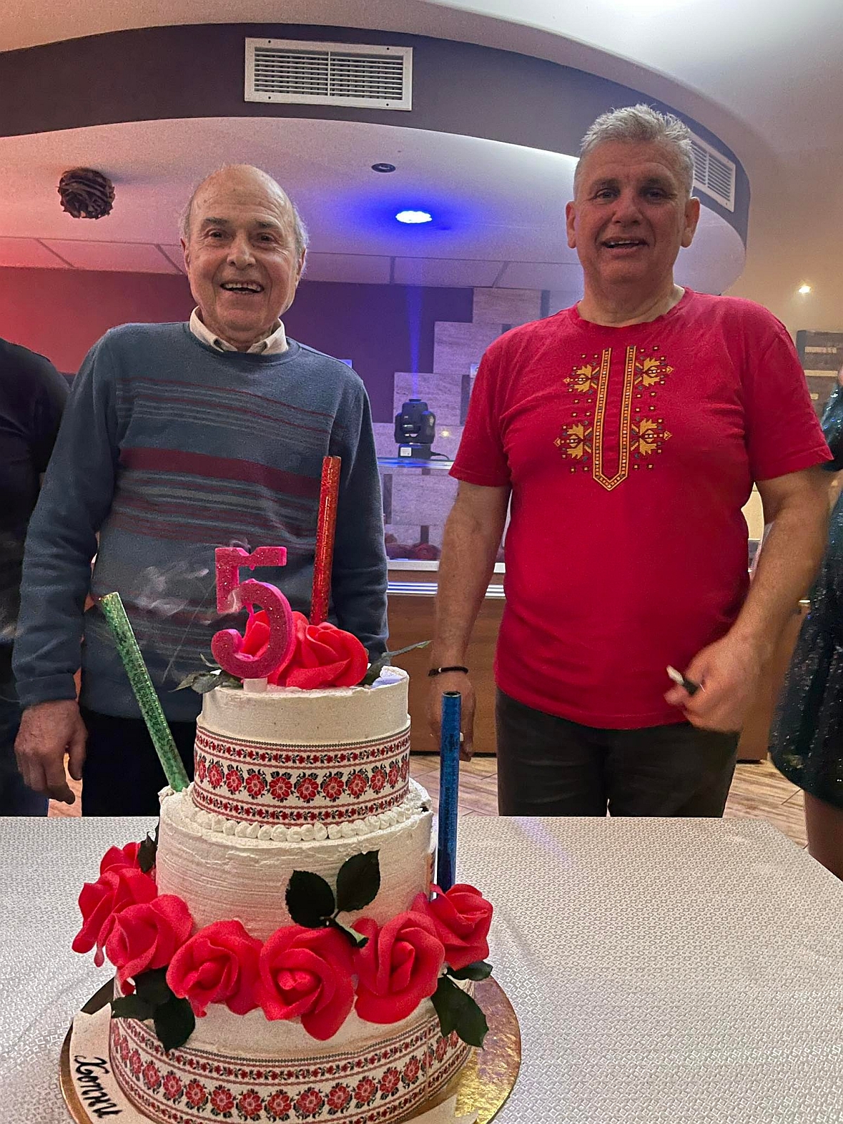 Специален поздрав поднесоха от трио „Звън”, а дизайнерската триетажна торта беше сладката награда за изгорените калории и вложения в танците труд.