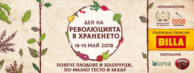 Food Revolution Day, една инициатива на фондацията на световно известният готвач Джейми Оливър, която работи за здравословното хранене сред децата. В страната ни има официални посланици на Food Revolution, които непрекъснато привличат доброволци от различни градове.