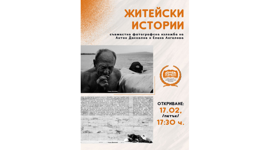 Житейски истории е съвместна фотографска изложба на Антон Даскалов и Елена Ангелова. Двамата представят сериите си „Живот на ръба” и „Душата на рибаря”, в които насочват вниманието към част от житейските истории, които ни заобикалят. Откриването на изложбата е на 17 февруари, от 17:30 ч., в Бялата галерия на Народно читалище „Развитие-1870”.