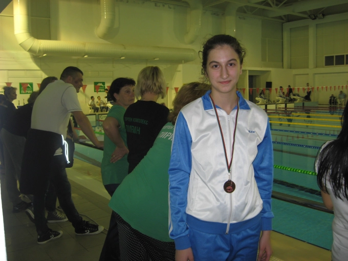 Теодора успя да спечели бронза в дисциплините 50 и 100 метра гръб, а треньорите й са категорични, че с тези резултати момичето прави сериозна заявка за призови места на държавните шампионати тази година.