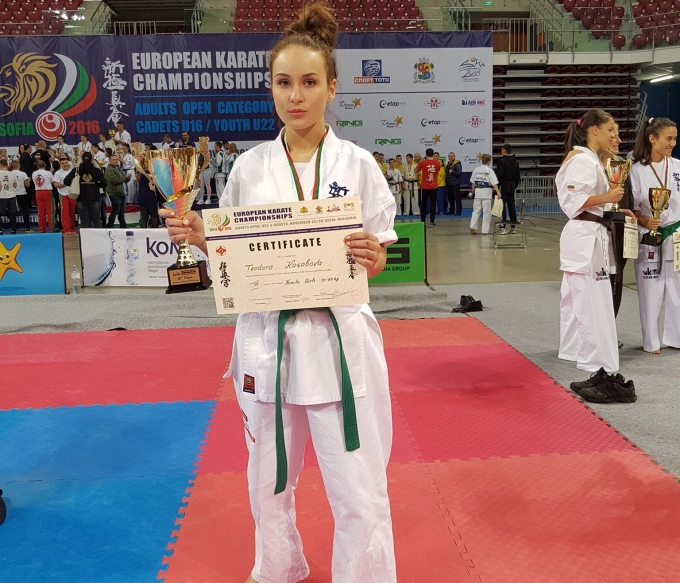 Поредна повод за гордост ни донесе вчера Теодора Касабова от спортен клуб по карате киокушинкай. Нашето момиче извойва бронзовия медал на провеждащото се в София европейско първенство за кадети и кадетки, мъже, жени и юноши до 22 години. Теодора участва в категория до 60 кг., а медала спечели след много добра игра срещу представителка на Украйна.