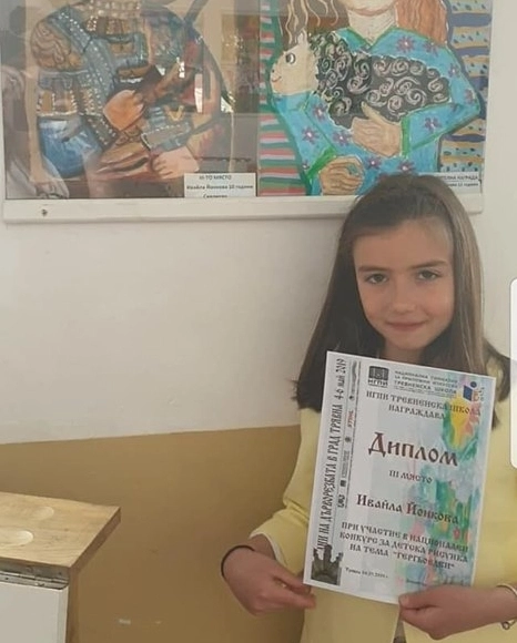 Ивайла спечели призовото място с рисувана икона на Св. Георги, а наградата й връчи кметът на Трявна Дончо Захариев - грамота и художествени материали.