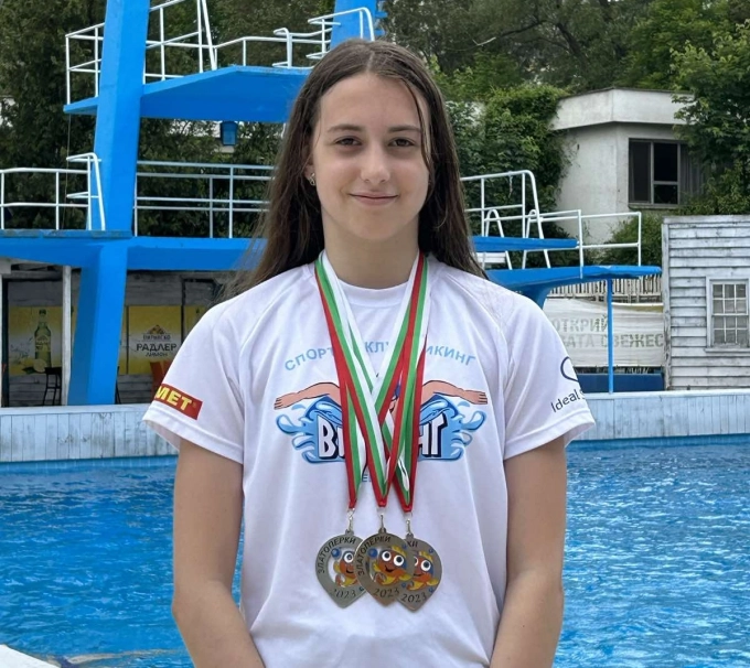 С много силно плуване Яна Петкова (родена през 2010 г.) стана трикратен медалист от престижното състезание по плуване "Златоперки".