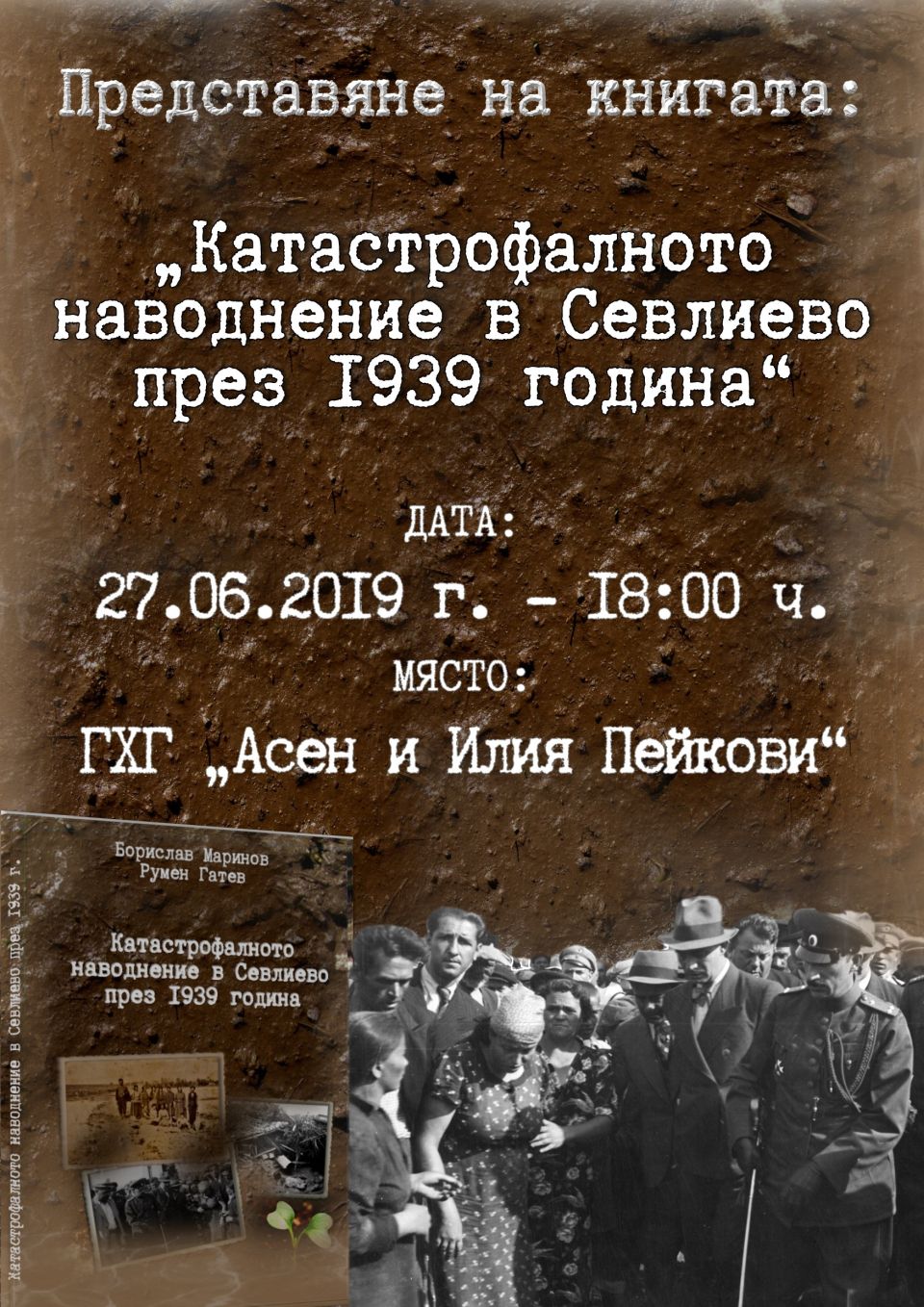 Книгата на двамата млади автори е озаглавена "Катастрофалното наводнение в Севлиево през 1939 година". Тя ще бъде представена в навечерието на годишнината от трагедията, на 27.06.2019 г. в градската художествена галерия "Асен и Илия Пейкови", от 18:00 часа.