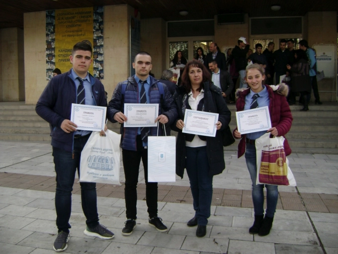 Симона Николаева, Валентин Банев и Хакан Чирак, единайсетокласници от Професионалната гимназия по механоелектротехника „Ген. Иван Бъчваров“ в Севлиево, могат да се считат за студенти в Стопанската академия в Свищов. Тримата получиха сертификати от Академията, след успешното им представяне на националното ученическо състезание по предприемачество. Сертификатите им дават право да бъдат приети за студенти в Стопанска академия по първа желана специалност в редовна форма на обучение. Те важат за всички участници, както за зрелостниците, така и за тези от 11 клас, като могат да се използват за кандидатстване в Стопанска академия без ограничение на годината на издаването на техните сертификати.