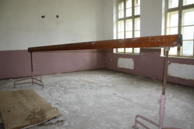 Досами стаята, която оприличих на фотографска лаборатория, вероятно е бил физкултурният салон. В средата на празното помещение стои гредата, по която хиляди малки крачета са опитвали да пазят равновесие. Защо и тази греда не е някъде, където ще свърши работа? Празното училище не ми отговаря. Единственият шум е от вятъра, който нахлува през дограмата без прозорци и подритва някой паднал лист хартия.