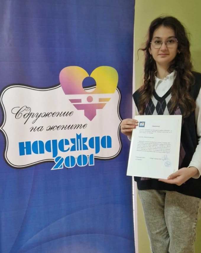 Момичето получи удостоверението си в присъствието на своят класен ръководител Радослава Стоянова и членове на Управителния съвет на сдружението.
