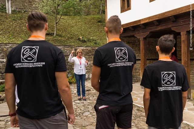 Директорът на ЕМО "Етър" обяснява задачата на младите каменоделци, снимка: ЕМО "Етър"