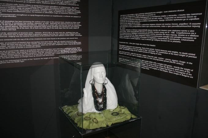 Украшение с над 10 000 стъклени мъниста, 40 планински кристала, карнеол и още няколко стотици разноцветни мъниста е експонирано на втория етаж в Хаджистояновотто училище. Археологическата находка се показва в своя първоначален вид, възстановена благодарение на студентите по археология от Великобритания, които работят това лято на средновековната крепост. За да се извадят тези няколко хиляди мънистата са пресяти около 10 кофи с пръст, а после всяко от тях четирите англичанки са измивали и нанизвали едно по едно, разказа ръководителят на разкопките на Хоталич Надежда Ботева.
