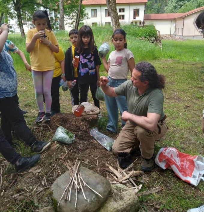 Имаше и вълнуващи моменти като палене на огън с помощта на гъба праханка - искрата се получава от прахан, кремък и чакмак и малките много се забавляваха, когато овладявайки древните умения огънят им се получаваше.
