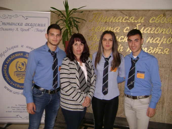 Галин Александров от 11 клас на ПГМЕТ «Ген. Иван Бъчваров» получи специалната награда на Община Свищов, а съученичката му Гюлбие Риза завоюва трето място с отбора, от който бе част, на провелото се на 16 март т.г. в Свищов национално ученическо състезание по предприемачество.