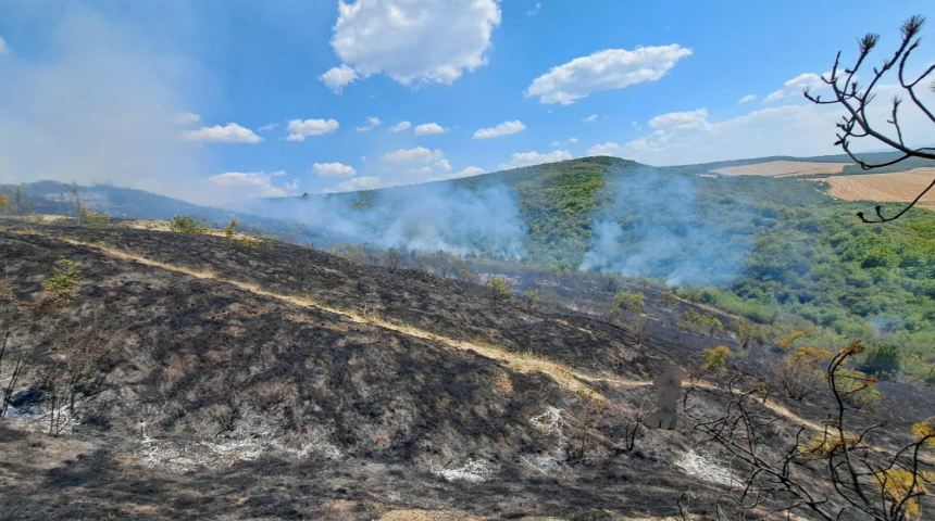 Пожар край Полски Тръмбеш вдигна на крак десетки служители и доброволци, снимка: СЦДП