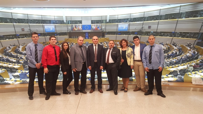 От 9-ти до 11-ти май 2017 г. Павел Дамянов, Радослав Петров, Хакан Чирак, Иван Златев и Фатме Касова, заедно с преподавателя инж. Кирилка Торлашка и директора на ПГМЕТ Иван Томев посетиха Брюксел и Европейския Парламент. По време на визитата си младите хора се запознаха с европейските институции, с ключовите им фигури, представителите на Парламент, Комисия и Съвет и научиха много за разпределението на местата в ЕП за отделните държави членки. Севлиевските ученици видяха една пленарна сесия, запознаха се с начина, по който заседават комисите в ЕП, политическите групи и външните парламентарни дейности.
