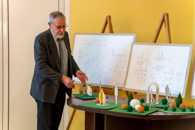 Става въпрос за една цялостна концепция за превръщането на пространството между Читалището и хотел "Севлиево плаза" в зелен оазис с креативни творчески елементи, обави при представенато на проекта по-рано днес председателят на Читалището Данаил Лалев на съвместна пресконференция между него, кметът на Севлиево Иван Иванов и ландшафтният архитект Симеон Абанос, автор на проекта.