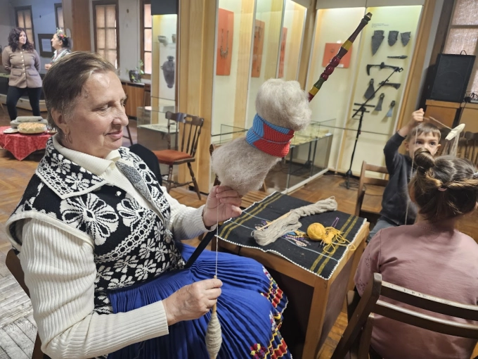 Кметицата на с. Хирево Христинка Петкова беше жената с къделята и вретеното, а деца бяха привлечени за по-фината работа - намотаването на пресуканата прежда. Разбира се, няма как без вещите напътствия на умееща да го прави баба, тъй като в малките детски ръце мотовилката стои неестествено, криви се, пада, но пък точно тези трудности провокираха децата да опитват пак и пак, докато се доближат до резултата на своите предци.