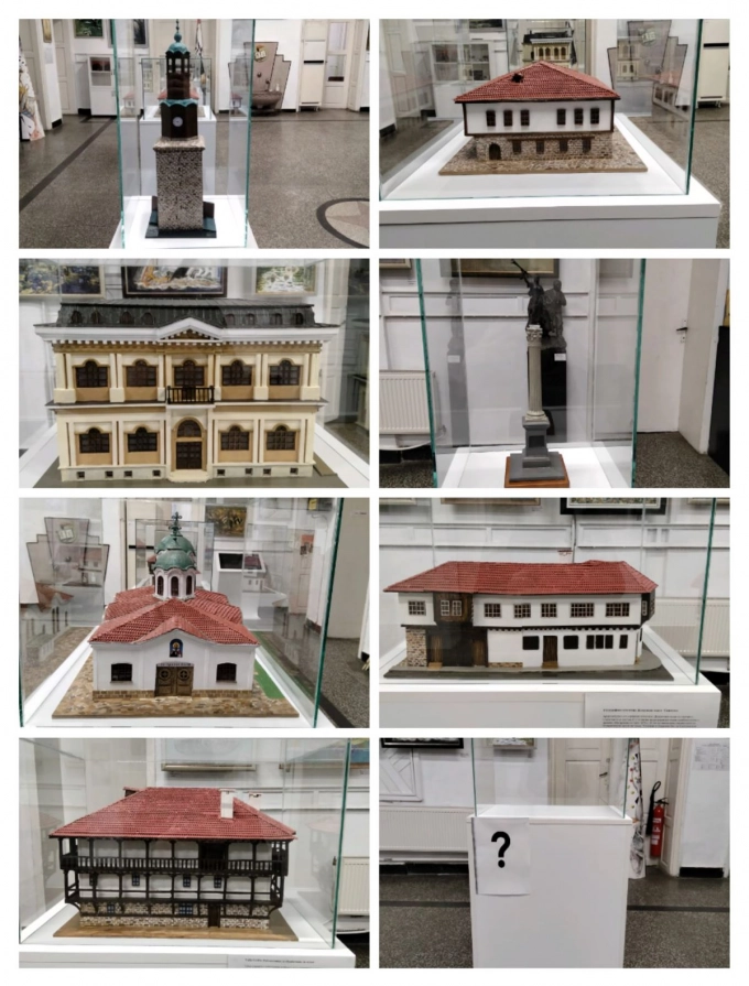 Непредубедената истина е, че всички сгради, изложени в Музея за съвременно изкуство са впечатляващи. До момента има изложени седем умалени копия. Те са на Часовниковата кула, Паметника на свободата в центъра на града, Табаханата, Градската художествена галерия, Дандолови къщи, Хаджистояновото училище и храм "Св. Пророк Илия". На шест от тях автор е художникът и директор на галерия "Асен и Илия Пейкови" Васко Василев.
