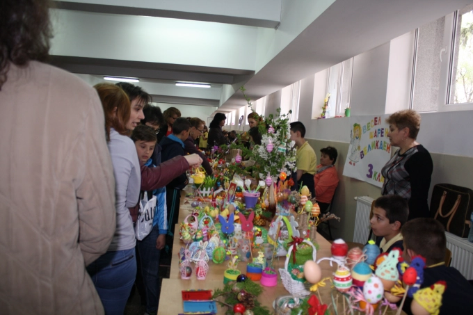 Тази вечер е традиционната великденска благотворителна изложба-базар на Основно училище "Стефан Пешев". Променливото време обърка малко първоначалните планове на организаторите. Замисленото като градинско увеселение се прехвърли във фоайетата на училището и столовата, но това нито намали потока от желаещи да закупят нещо, нито снижи ентусиазма на децата.