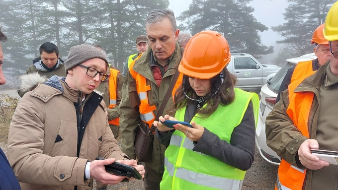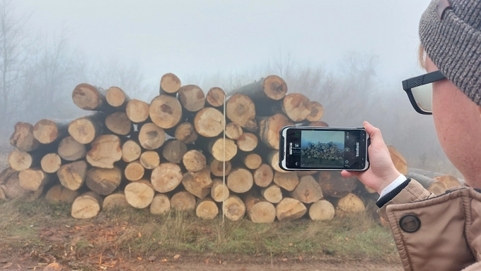 Сигурд Уле Рууд – представител на организация „Международно развитие Норвегия“ и на компанията, разработила приложението демонстрира неговите възможности на терен. За целта бяха посетени три обекта за добив на дървесина, а възможностите на приложението бяха тествани в три различни ситуации - измерване на дървесина накуп, подредена, и натоварена на различни камиона с различна подредба.