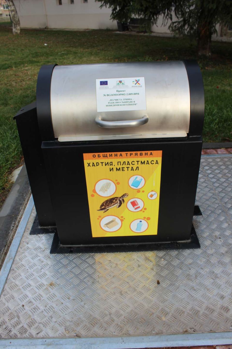 Новата система за разделно подземно събиране на боклука е реализирана по проект “По-чиста Трявна – разделно събиране в невидими контейнери”. Финнасирането е от Европейския фонд за регионално развитие по Оперативна програма “Околна среда 2014-2022 г.” и е на стойност 390 933 лв., от които 58 639, 95 лв. са национално съфинансирани от държавния бюджет.