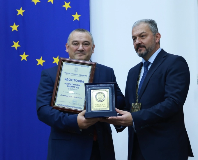 Фирмите "Идеал Стандарт-Видима", "Хитачи енерджи" и Общински пазари Севлиево бяха удостоени с почетния знак на Севлиево заради подкрепата за обществено значими каузи и силната ангажираност към всяка сфера от живота в общината. За същото отличие получи и Петер Хамбергер - управител на "Хамбергер България".