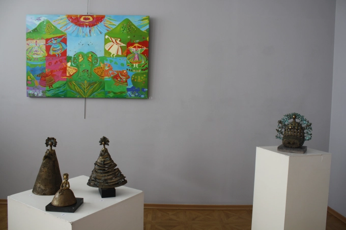 В изложбата са представени и живописни платна на авторката, за които самата тя казва, че рисува, докато си почива от пластиките.