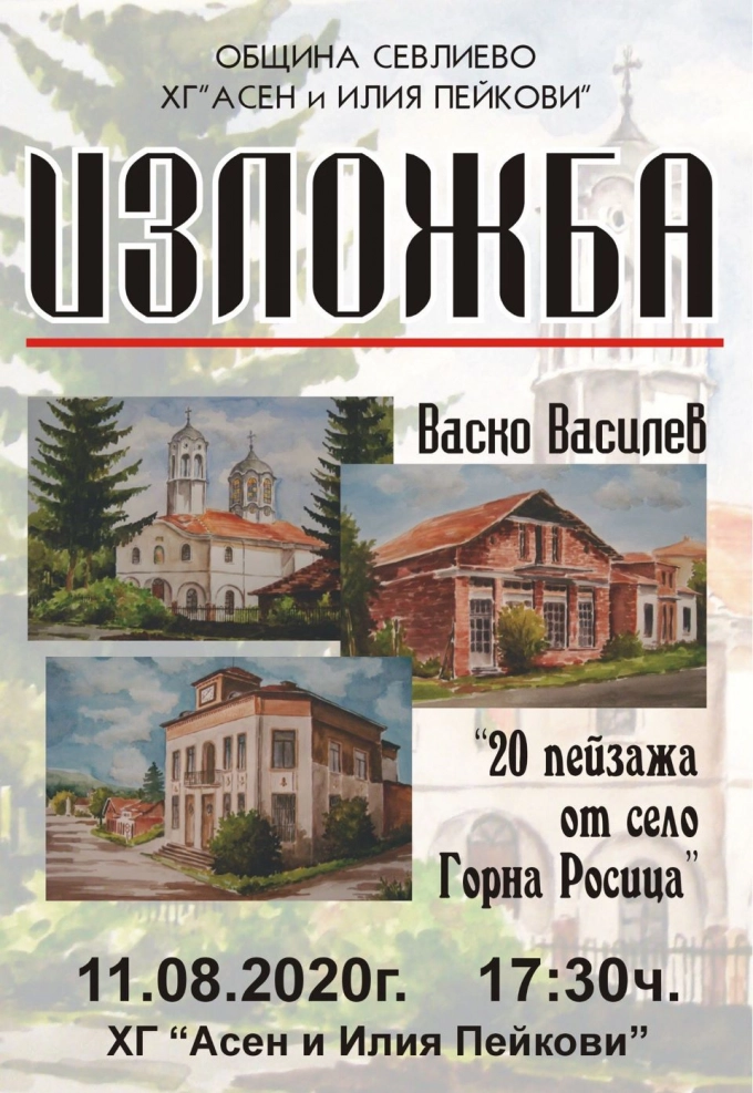 Самостоятелна изложба открива утре вечер, 11 август 2020 г., директорът на Градската художествена галерия "Асен и Илия Пйкови" Васко Василев. Изложбата е озаглавена "20 пейзажа от село Горна Росица".
