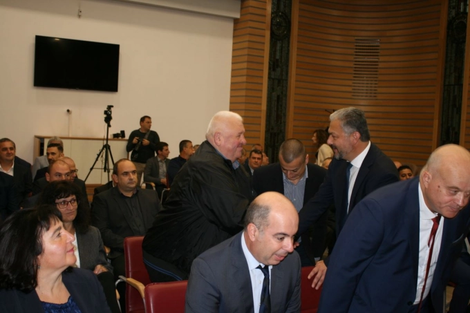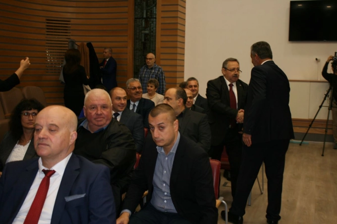 Преди началото на заседанието Иван Иванов поздрави всеки от новите общински съветници и кметове, снимка: "Севлиево онлайн"