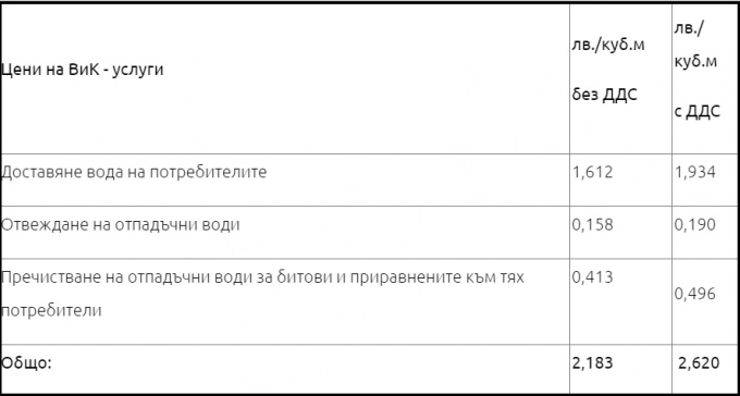 В тази сума влизат три компонента - доставка, отвеждане и пречистване на водата.